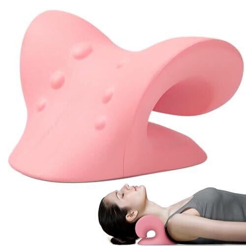 Neck Stretcher for Pain Relief, Cervical Traction Pillow for Neck and Shoulder Relaxer (Pink)