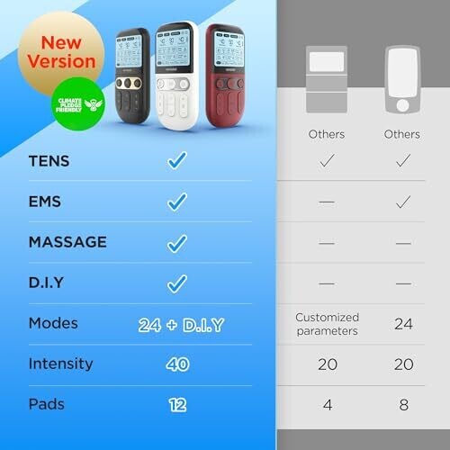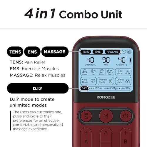• All-in-one 4 in 1 design combines DIY pain relief, TENS, EMS, and massage in a single compact device.