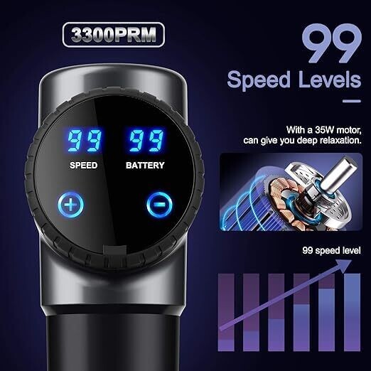 Backski Massage Gun Muscle Massager Electric Handheld Massager 99 Speeds 2800 Mah Led Touch Panel