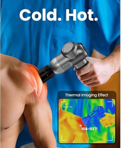 Dual heat and cold therapy designed by physical therapists deliver faster recovery. This lightweight, portable massager provides deep tissue relief with quiet operation, a LED display, ergonomic grip, fast charging, and multiple massage heads for athletes and everyday relief.
