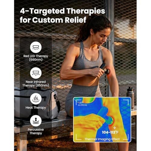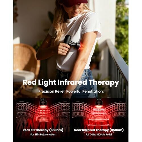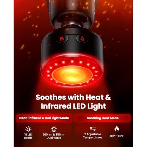 - Infrared heating head combines warmth with percussion to relax tight muscles and improve blood flow for faster recovery.