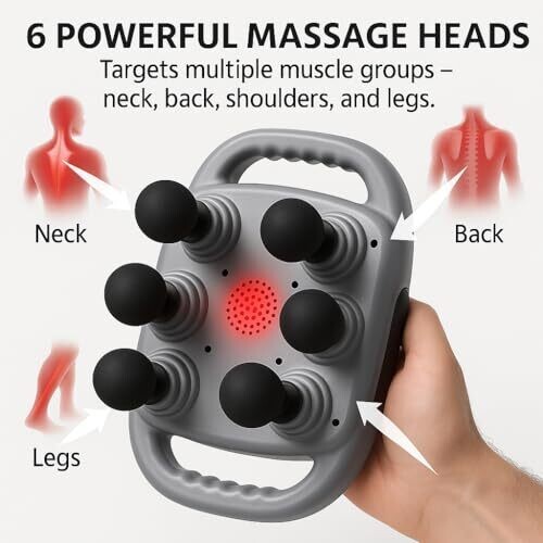 - 6-head massage system delivers targeted therapy for neck, back, legs, arms, and shoulders.