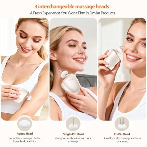 - 3‑in‑1 mini massage gun designed for full‑body, facial, and scalp massage in one device.