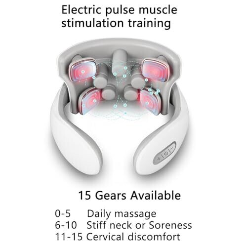 • Neck Electric Muscle Stimulator with Heat for Pain Relief, 15 Levels Deep Tissue Massage