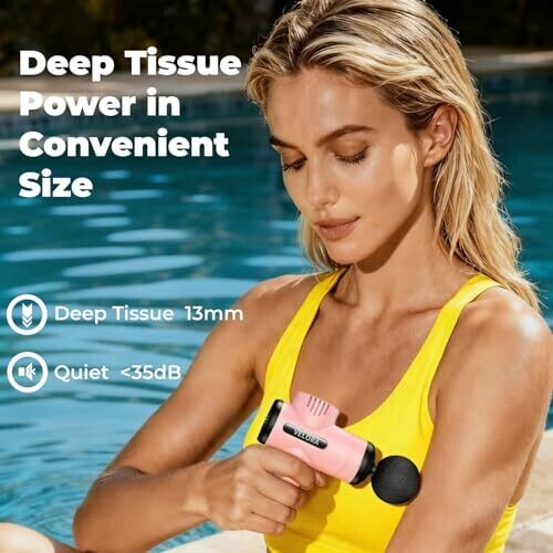 - Compact, powerful mini massage gun designed for deep tissue relief with a focused, high-frequency percussion.