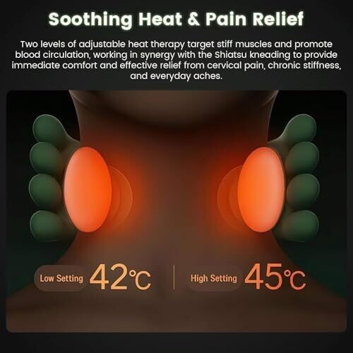 • Neck Massager with Heat Shiatsu Massager 4 Kneading Nodes 3 Power Levels