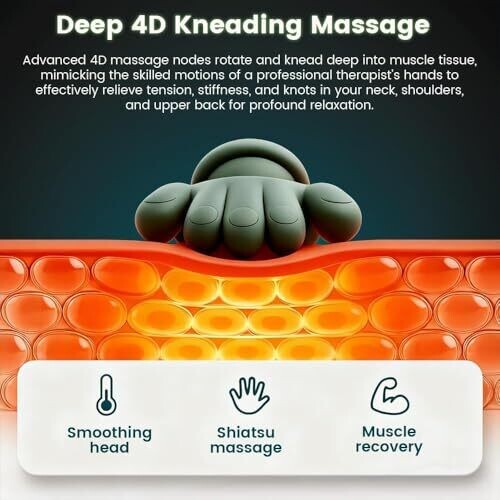Neck Massager with Heat Shiatsu Massager 4 Kneading Nodes 3 Power Levels