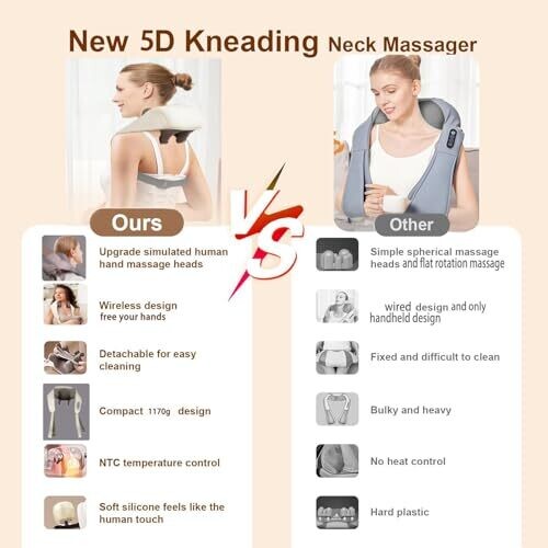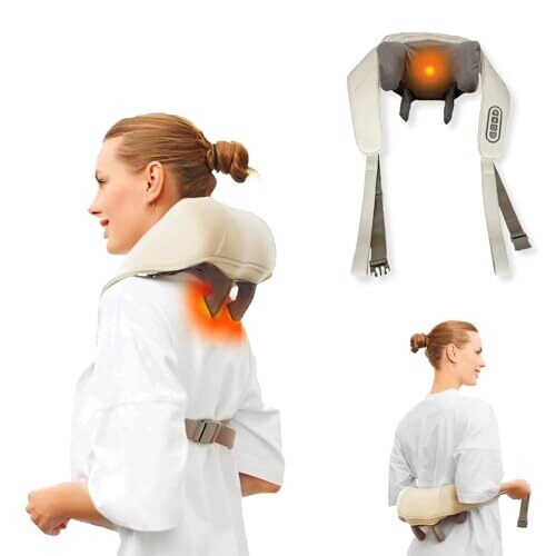 - Neck Massager with heat for cordless, portable relief designed for the neck, shoulders, and upper back