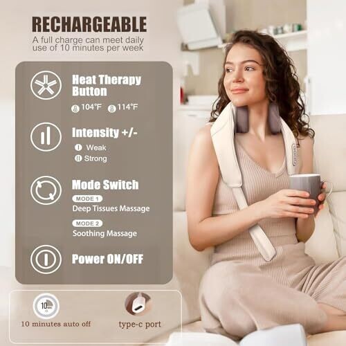 - Adjustable massage modes and heat function to customize intensity and temperature