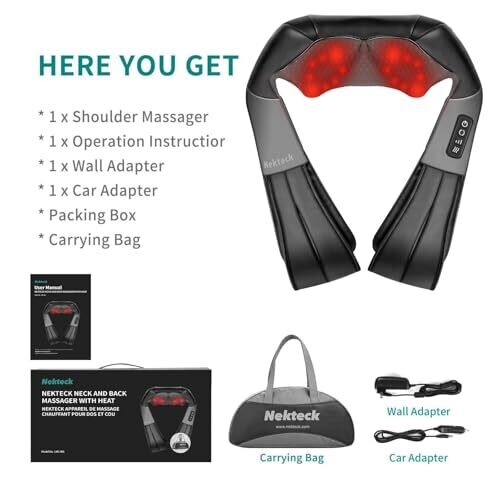 - Ergonomic design follows body contours for targeted massage on shoulders, back, legs, and more.