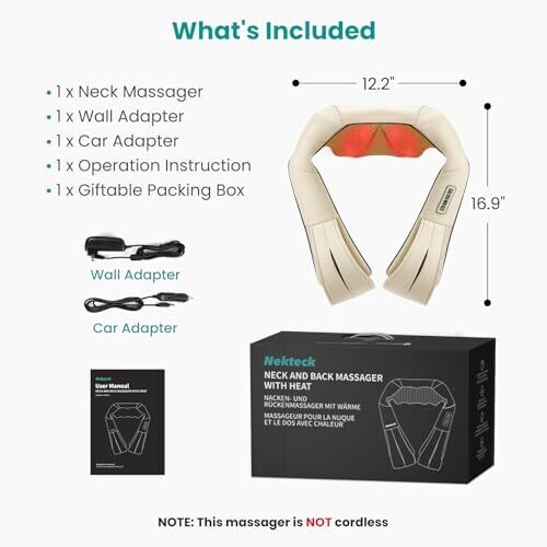 Experience deep tissue relief with 8-node Shiatsu and soothing heat. This massager targets the neck, shoulders, back, legs, and more, with adjustable speeds and infrared heat for relaxation and improved circulation. Includes wall and car adapters for home, office, or travel.