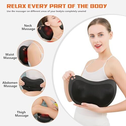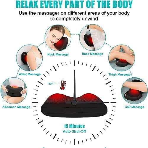 Experience professional relief at home with a versatile massager for neck, back, shoulders, and more. Deep kneading Shiatsu nodes mimic a masseuse, with infrared heat, three speeds, bi-directional massage, and a portable design for home, office, or car use.