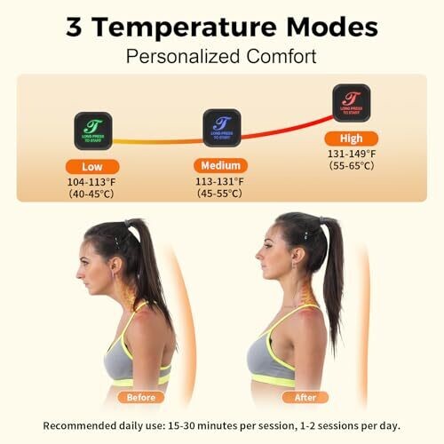 Experience cordless relief with a heated traction device designed for on-the-go comfort. Soft, breathable materials fit daily use while targeting neck and shoulder tension. Three temperature modes and a 60-minute auto-off provide safe, customizable heat therapy.