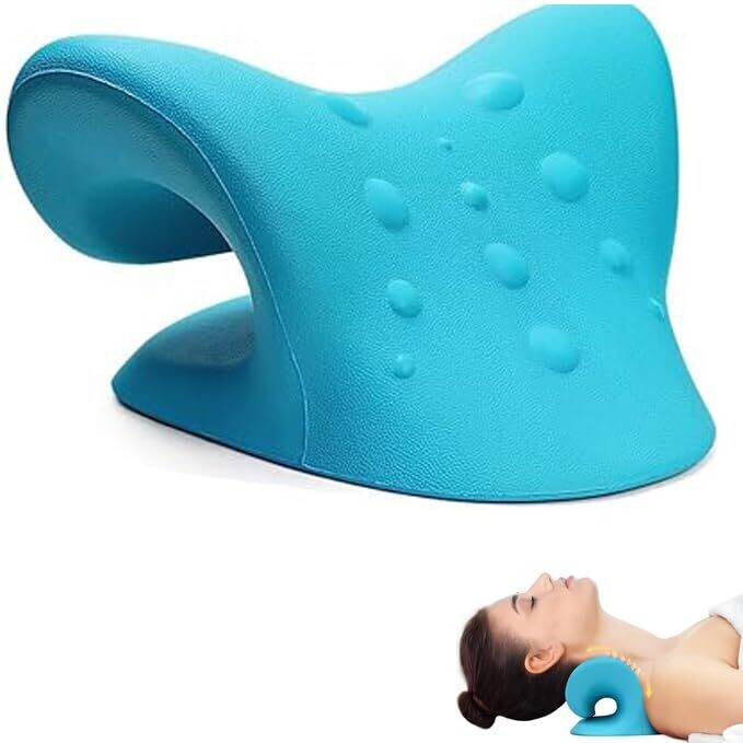 Ikeep Stretcher Pain Relief, Cervical Traction Pillow Neck and Shoulder (Blue)