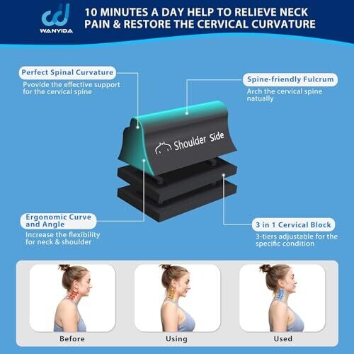 - Promotes natural cervical spine alignment and gentle traction to improve neck flexibility and posture.