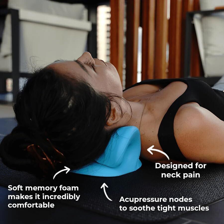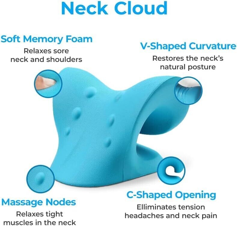 Fast 10-minute neck pain relief using gentle cervical traction. Not for overnight use. Ergonomic C-curve design matches the natural spine to provide vertical and horizontal support. 6-point pressure relief system targets key neck and head muscles to decompress vertebrae and ease headaches. High-density elastic foam maintains firmness and resists flattening over time. Suitable for use on floors, beds, or sofas in home, office, or travel settings. Includes a compact travel pouch for portability. Safe and drug-free, offering a natural alternative to chiropractic visits.