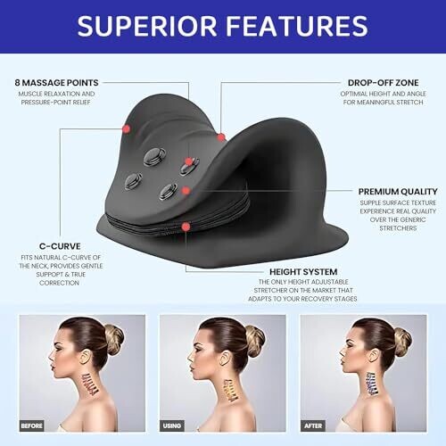 Rutrezogo Neck and Shoulder Relaxer delivers targeted cervical traction to ease neck pain and improve posture. Its ergonomic C-curve design follows natural neck curvature, with an adjustable height system and eight massage nodes for soothing, customizable daily relief.
