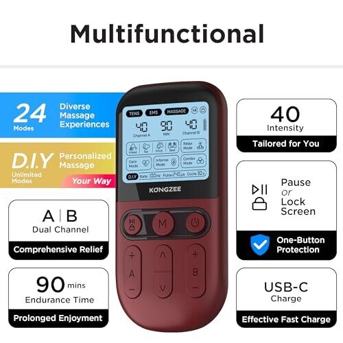 - All-in-one 4 in 1 design combines DIY pain relief, TENS, EMS, and massage in a single compact device.