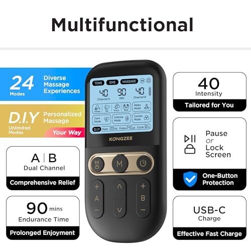 4 in 1 combination device (TENS, EMS, massage, DIY modes).