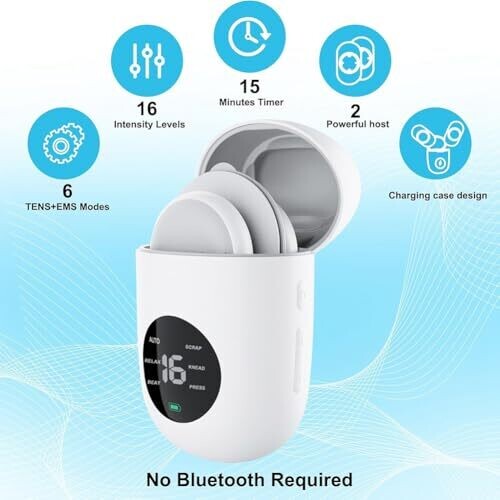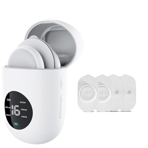 Experience portable, cordless relief with a wireless, rechargeable TENS EMS device for feet, legs, shoulders, lower back, and neck. Includes a compact charging case, six preset modes, 16 intensity levels, and four reusable hydrogel pads with secure magnetic connections.