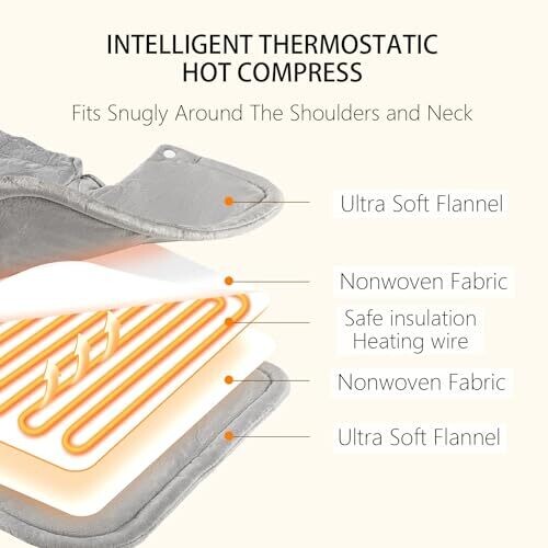 Iggd Oqi Heating Pad for Shoulders and Neck, 34 X 57 cm, 9 Heat Settings (Grey)