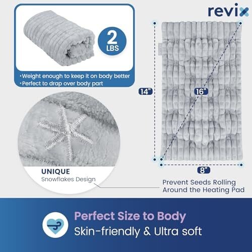 • Distinctive snowflakes design with skin-friendly flannel fabric provides even heat distribution and gentle touch.