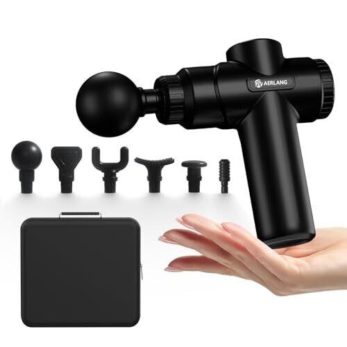 The Aerlang massage gun delivers deep tissue relief to speed up recovery. With 10 adjustable speeds, eight massage heads, a quiet brushless motor, and USB Type-C charging, it’s a compact handheld solution for home, gym, or office use.