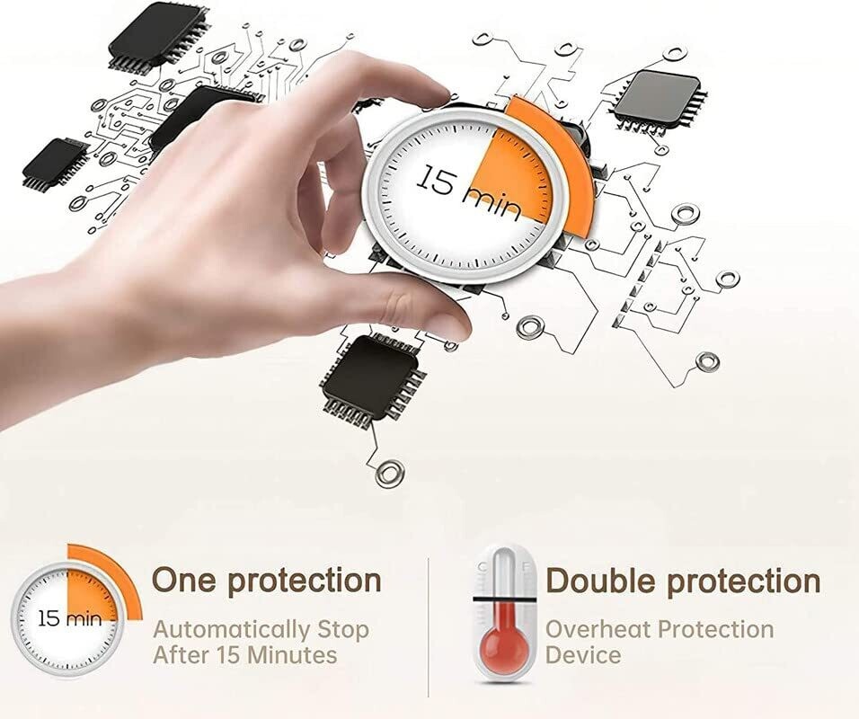 • Smart features include auto-off after a 15-minute cycle and quick heating for fast relief.