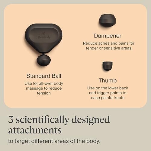 Three foam attachments—Thumb for targeted relief, Standard Ball for general use, Dampener for sensitive areas
