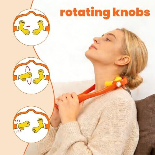 Shiatsu Neck Massager with 2 Modes, 4-Point Gentle & 2-Point Deep Tissue Massage, Adjustable Knob Intensity for Shoulder & Neck Pain Relief (Orange).