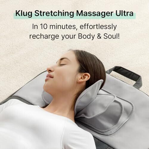 Klug Auto-Stretching Massager Mat Ultra, Back & Neck Relief with 3 Intensity Levels, 7 Programs, 2 Heat Levels, Foldable Portable, Gray