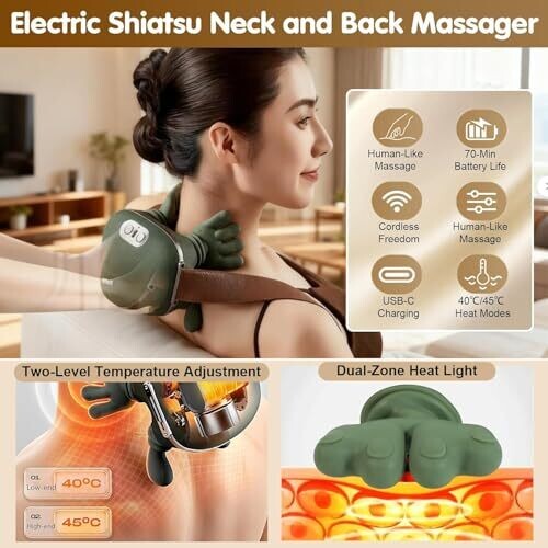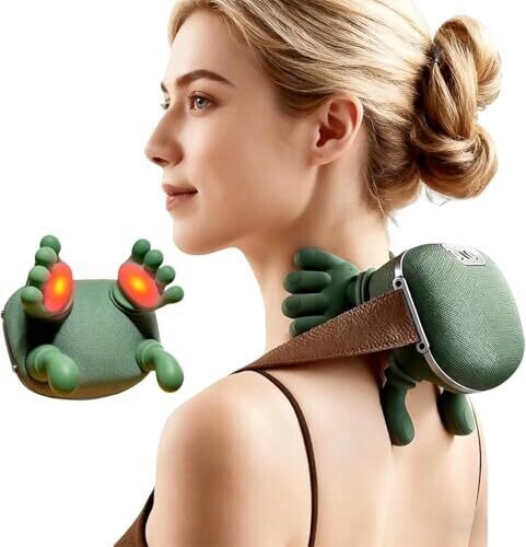 • 2026 Heated Neck and Shoulder Massager - Wireless Portable Hands-Free Shiatsu Kneading Pillow, Simulated Hand Design