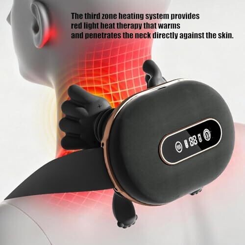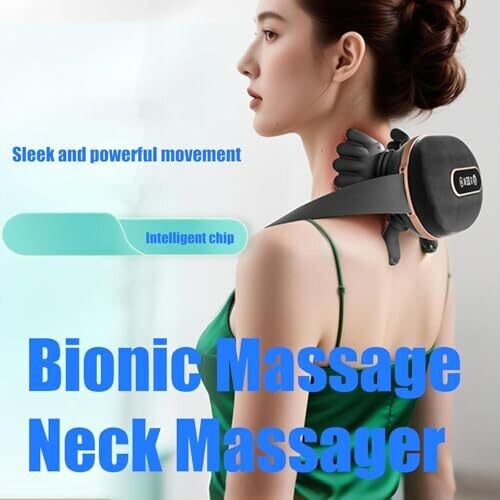 • Bionic Heated Massager, Kneading Massage, Adjustable Heat, Neck and Back (Black)